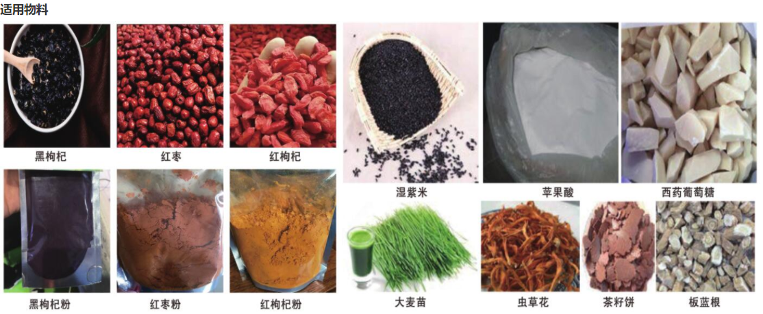 超微低溫粉碎機能處理如化學制品、 食品、 藥品、 化妝品、 染料、 樹脂、 殼物等多種物料的粉碎及分級。 能對大米、 白糖、 各種豆類、 沉香木、 花椒、 胡椒、 咖啡豆、 可可豆、 茵香、 八角、 桂皮、 孜然、 豆荔、 百里香等各種物料起到良好的粉碎效果含油呈特別高的物料如芝麻、 核桃、 花生、 杏仁、 瓜子仁等則無法單獨粉碎。 如需粉碎含沺孟特別高的物料, 需要將其與其它不含油或者含油量低的物料混合在—起, 含油皇高的物料比例盡量低千25%。 如果有大顆粒的離含油量物料, 用超微低溫粉碎機組粉碎前, 需用破碎機或者不銹鋼粗碎機進行破碎(粗碎), 再用超微低溫粉碎機組進行超微粉碎。