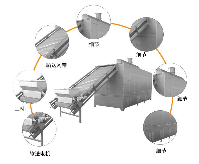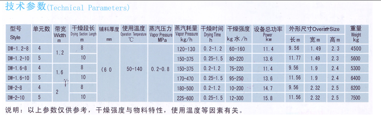??在實(shí)際使用過程中我們認(rèn)識(shí)到以一種設(shè)計(jì)方式解決多種不同性質(zhì)物料的干燥是不合理的,因此,DWT系列設(shè)備在定型產(chǎn)品的基礎(chǔ)上同時(shí)強(qiáng)調(diào)其專用性,基本類型有脫水蔬菜專機(jī)、米飯專機(jī)、中藥飲片專機(jī)、顏料染料專機(jī)、洗棉及水洗毛專機(jī).炒貨食品專機(jī)、塑料顆粒干燥與熱處理專機(jī)、還有磁粉、氧化鐵黃、輕質(zhì)碳酸鈣、白碳黑干燥專機(jī)等等。客戶在設(shè)備選型時(shí)應(yīng)根據(jù)物料特性與我廠設(shè)計(jì)人員協(xié)商決定根據(jù)物料干燥的特殊要求確定風(fēng)量、溫度、相對(duì)濕度、運(yùn)轉(zhuǎn)速度等技術(shù)參數(shù)以保證設(shè)備的適用性、可靠性達(dá)到較好的運(yùn)行性能。